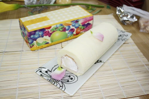 品名 桂花奶凍捲 成份 桂花.麵粉.蛋.鮮奶油.糖.植物油等高級原料 保存期限 冷藏3天 建議售價 原價:250元/條 特價:150元/條